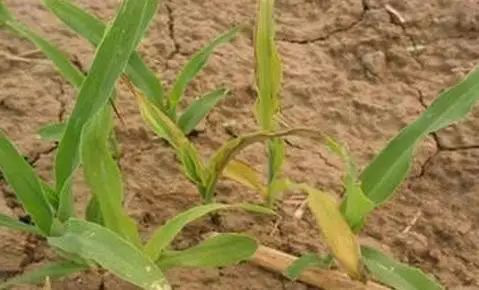 玉米苗期遇有較長(zhǎng)時(shí)間缺雨,造成大氣和土壤干旱,不能在土壤缺水時(shí)滿足玉米生長(zhǎng)發(fā)育的需要易造成死苗。玉米苗期干旱,幼株的上部葉片卷起,并呈暗色。嚴(yán)重時(shí)葉片邊緣或葉尖變黃,隨后下部葉片的葉尖端或葉緣干枯。在疏松沙土上幼苗干枯而死。